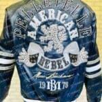 Introducing the American Rebel Navy Blue Pelle Pelle Studded Jacket – a bold and edgy fashion statement that exudes confidence and attitude. This jacket seamlessly combines classic design elements with modern touches, making it a must-have for fashion-forward individuals.