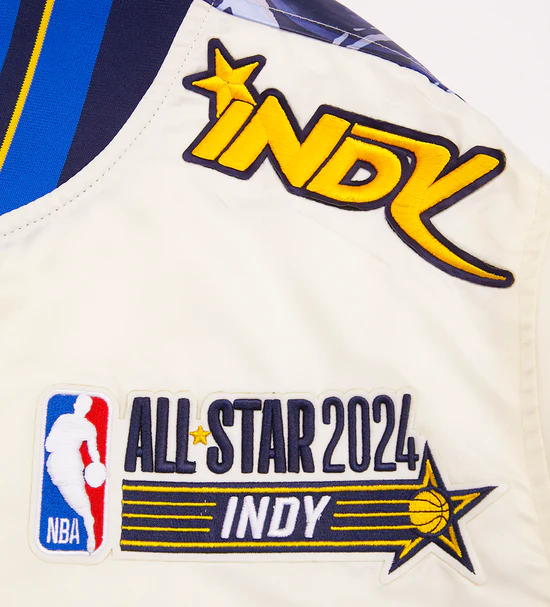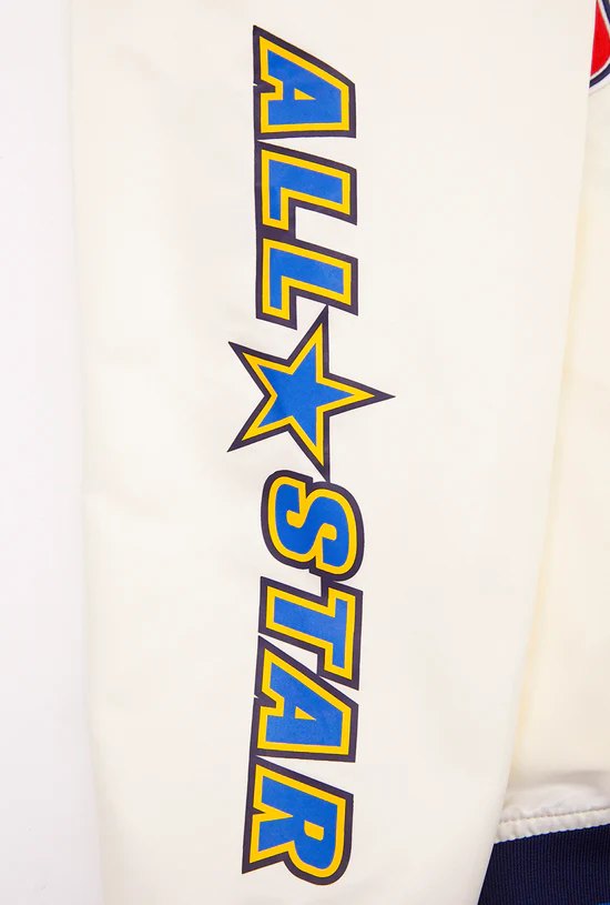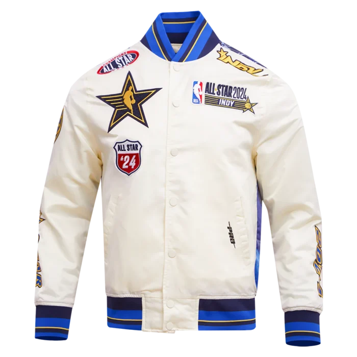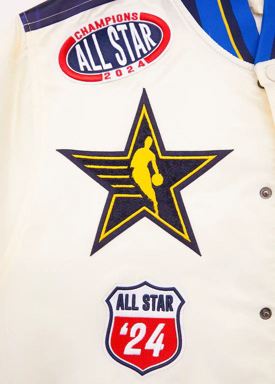 Made from premium satin fabric, this jacket offers a sleek and lustrous appearance while ensuring durability and comfort. Its refined silhouette features the official NBA All-Star Game emblem prominently displayed on the chest, making a bold statement of your support for the game’s finest players.
