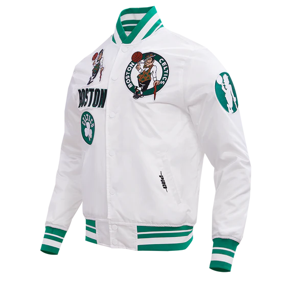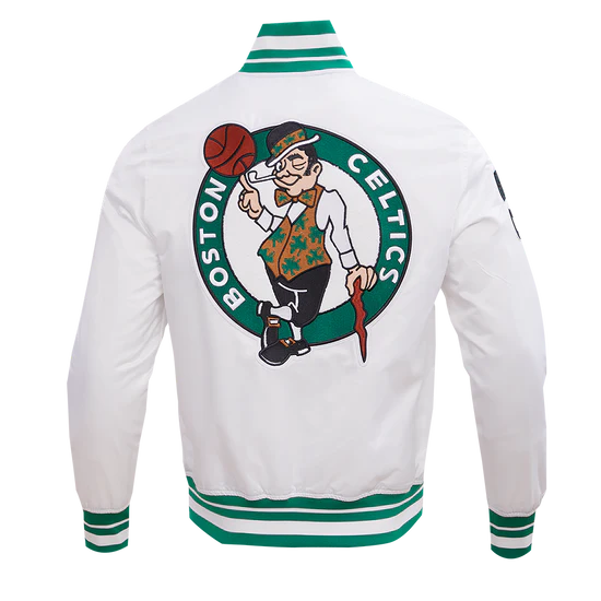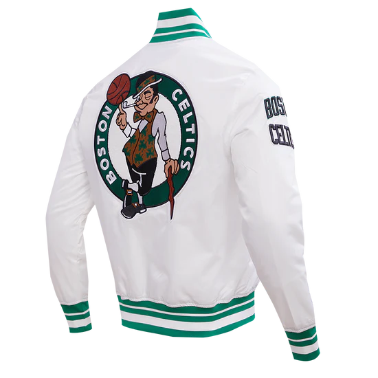 Keywords: NBA Boston Celtics, Retro Classic, Men’s Rib Satin Jacket, basketball fashion, iconic style, varsity aesthetic, durable construction, timeless design, fan apparel, sports memorabilia.