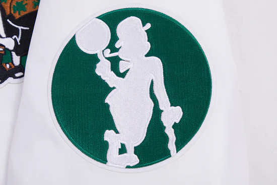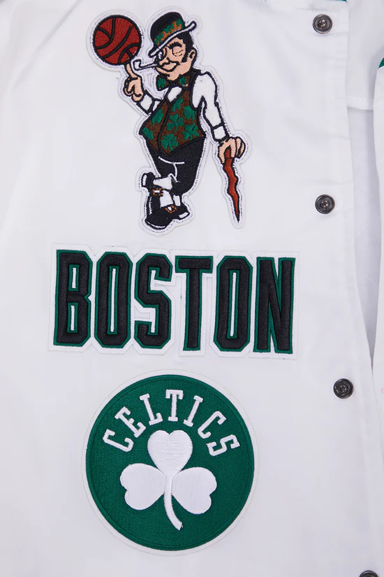 Made from high-quality rib satin fabric, this jacket exudes luxury and durability, ensuring both comfort and longevity. Its design pays tribute to the classic varsity aesthetic, featuring the distinctive Celtics logo prominently displayed on the chest.