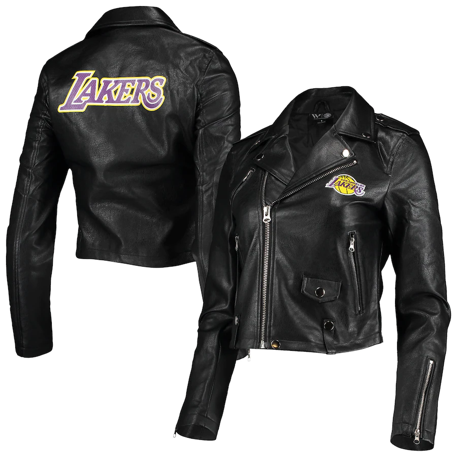 – Stay warm in style with The Wild Collective’s Women’s Los Angeles Lakers Moto Jacket