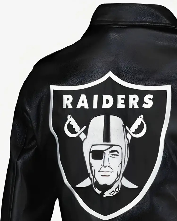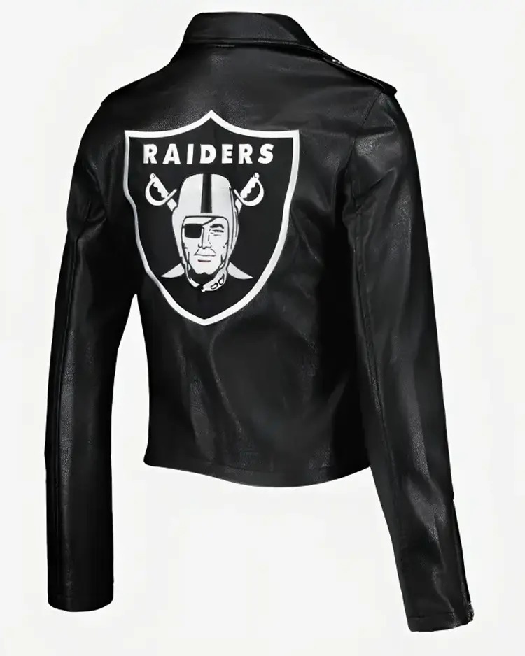 Raiders Badass Style – Sleek black leather biker jacket with iconic Raiders shield logo