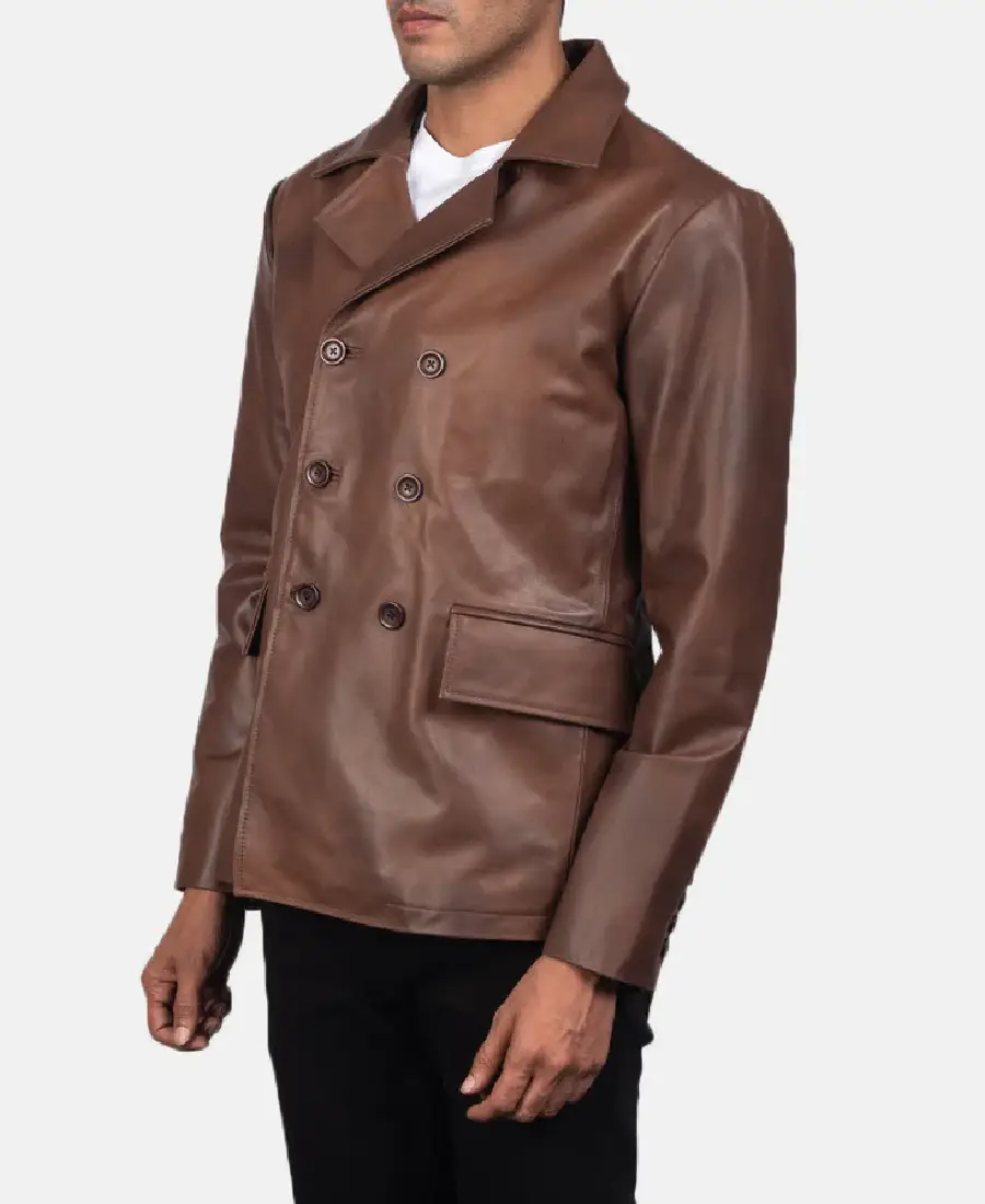 In the realm of classic outerwear, the Men Solid Brown Leather Peacoat stands as a sophisticated evolution of traditional naval attire. Originally designed for sailors to withstand harsh ocean winds, this leather iteration replaces heavy wool with premium, full-grain hide for a more rugged and durable finish. The rich, earthy brown tone provides a warmer alternative to standard black, making it an incredibly versatile piece for both formal and casual autumn settings.