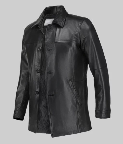 In the fast-moving world of modern fashion, the Men’s Classic Solid Black Leather Coat remains an unrivaled symbol of sophistication and rugged durability. Designed for the man who values a streamlined silhouette, this coat strips away unnecessary hardware to focus on the raw beauty of premium hide. Its deep, midnight-black finish provides a versatile foundation that transitions effortlessly from a professional boardroom setting to an exclusive evening event.