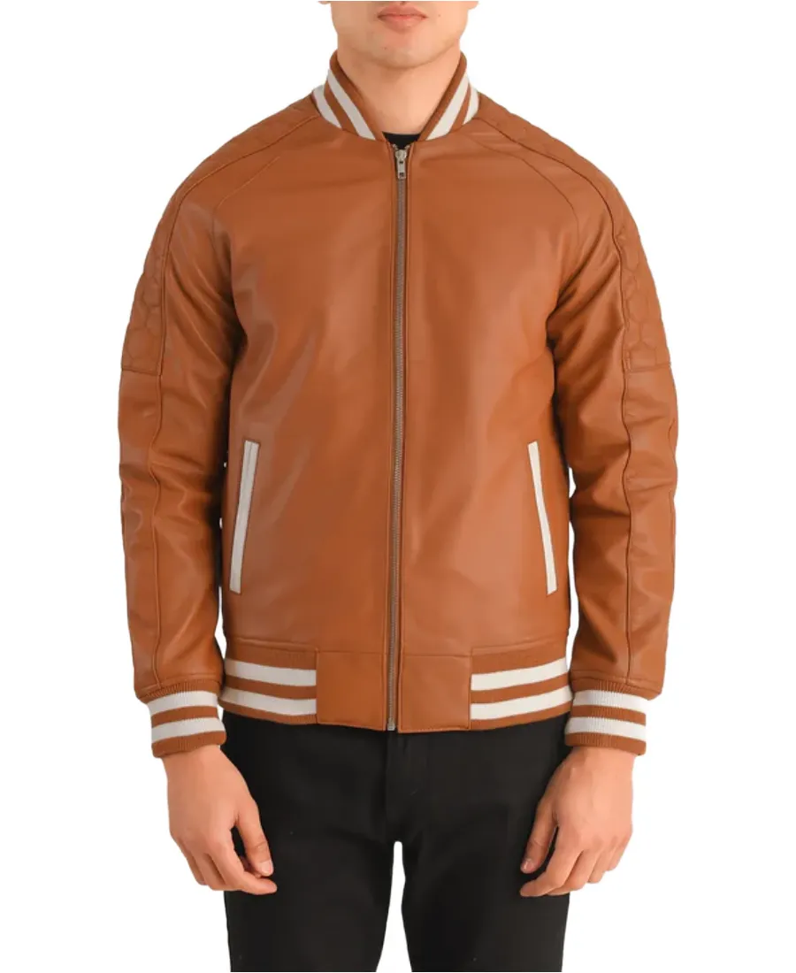 Men’s Pascal Brown Leather Varsity Jacket