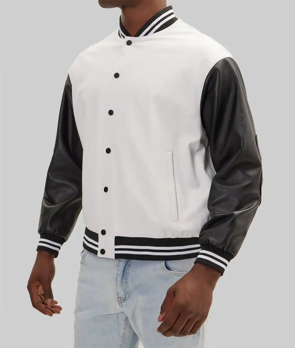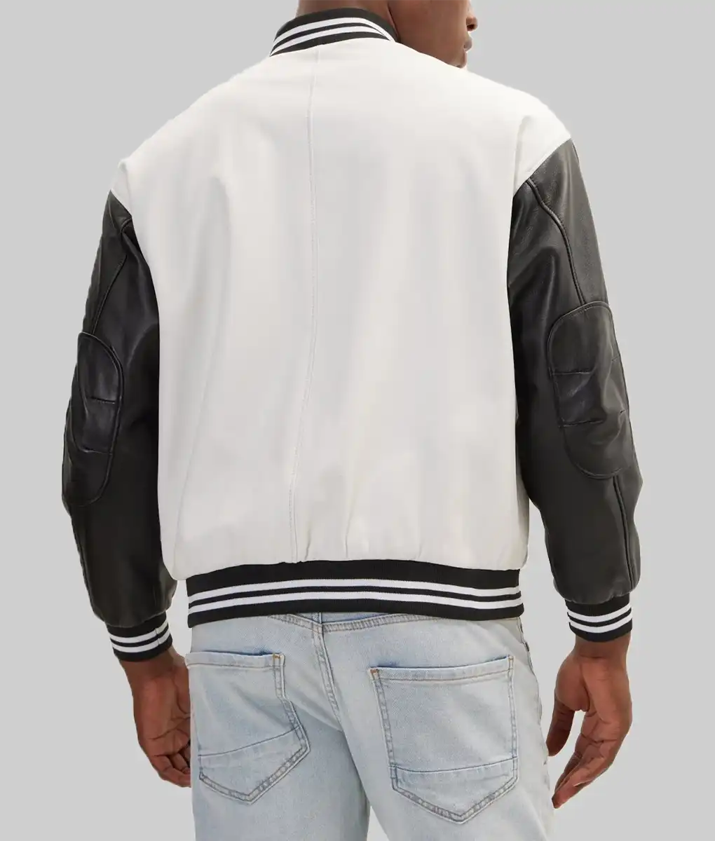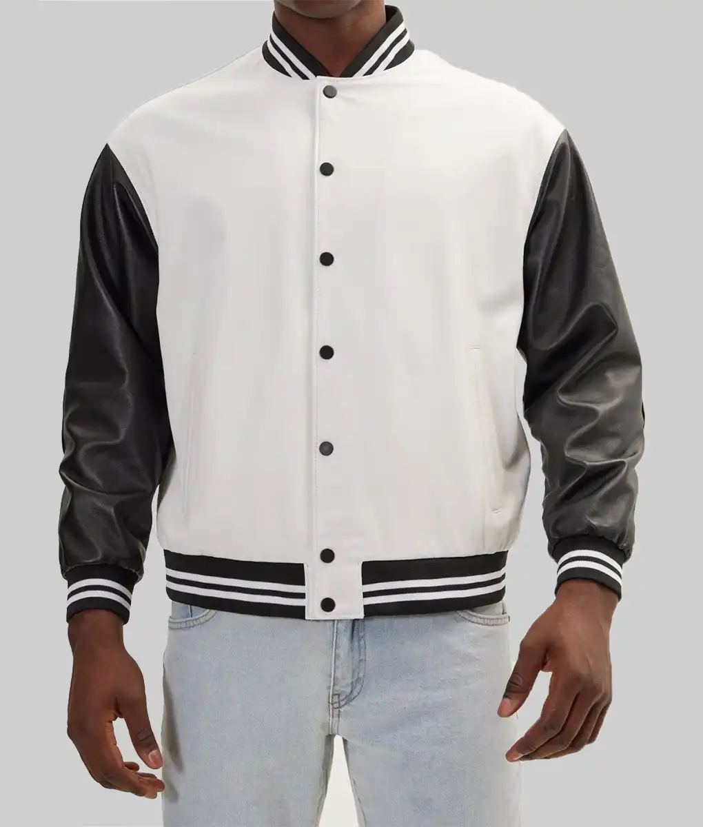 Men’s White and Black Leather Varsity Jacket: The Pinnacle of Monochrome Luxury
