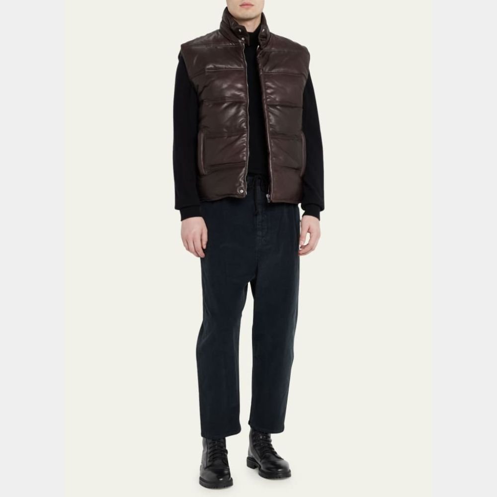 The construction of the Nolan Brown Puffer Vest focuses on a balance between extreme thermal insulation and a sharp, athletic silhouette. Crafted from top-tier, water-resistant ripstop fabric, the vest features high-density down-alternative filling to ensure maximum warmth without the bulk of full sleeves. Designers have integrated premium functional elements such as a heavy-duty metallic zipper, a soft-touch stand collar, and fleece-lined hand-warmer pockets to ensure maximum utility during daily urban commutes. The horizontal quilted baffles ensure a structured drape that provides a sharp, vertical line for any body type.