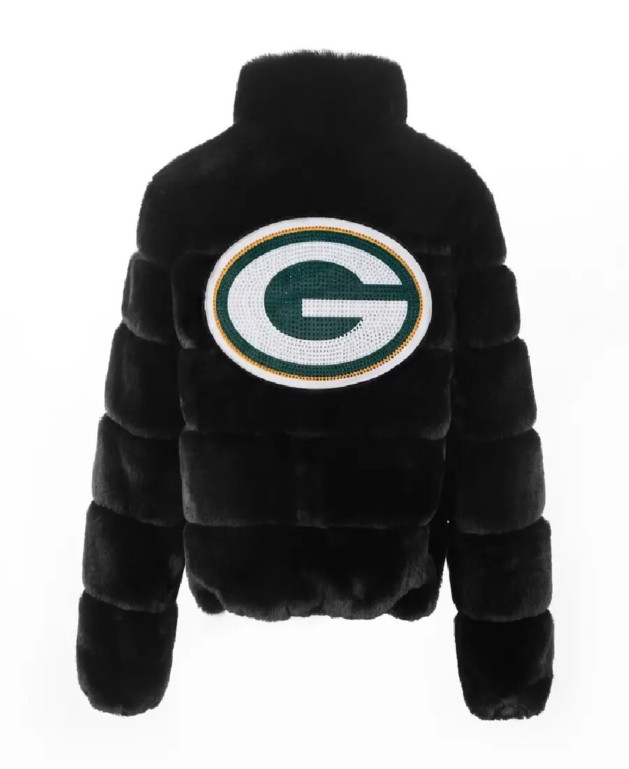 This stunning green fur bomber is the ultimate cold-weather statement. The Packers Faux Fur Jacket features a rich, dense faux fur pile that mimics real fur, a full-zip front for easy wear, and proud Packers gold accent details on the cuffs and pockets. It’s a premier piece of Packers luxury outerwear, elevating your game day look from casual to glamorous with a single, stunning layer.