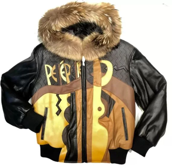 Stylish fox hooded leather jacket with a unique Picasso-inspired design.